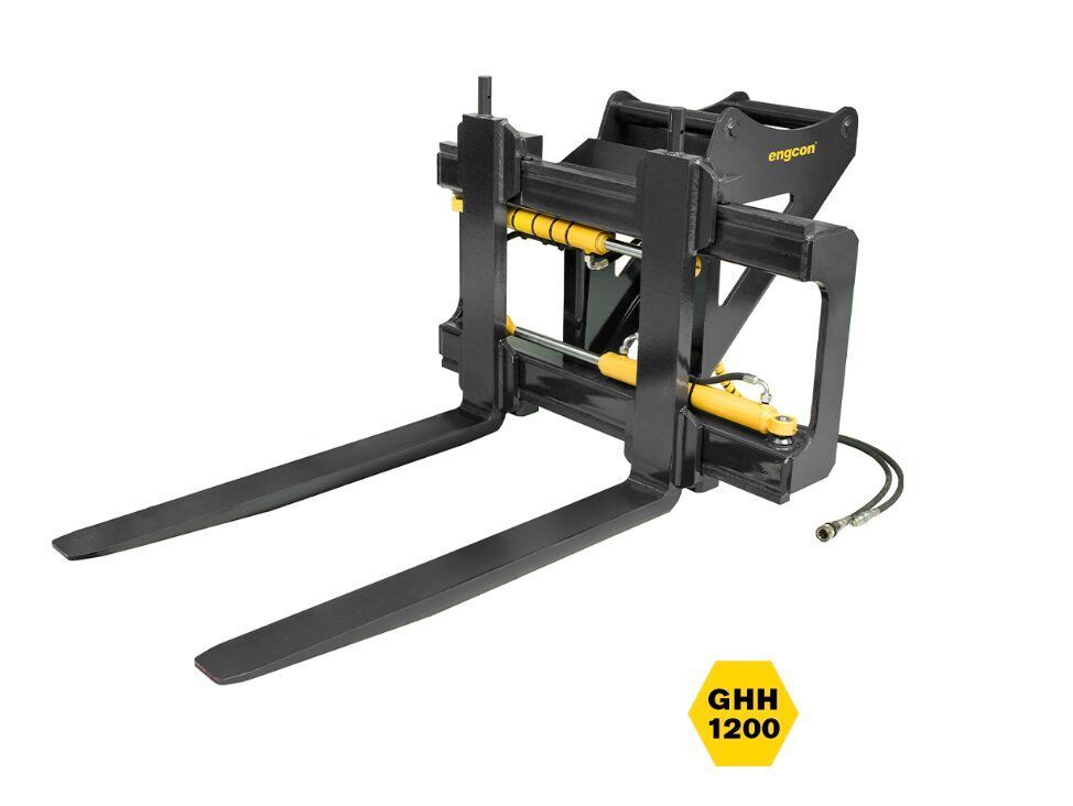 Engcon GHH1200 pallet forks provide a robust and versatile lifting solution for excavators weighing