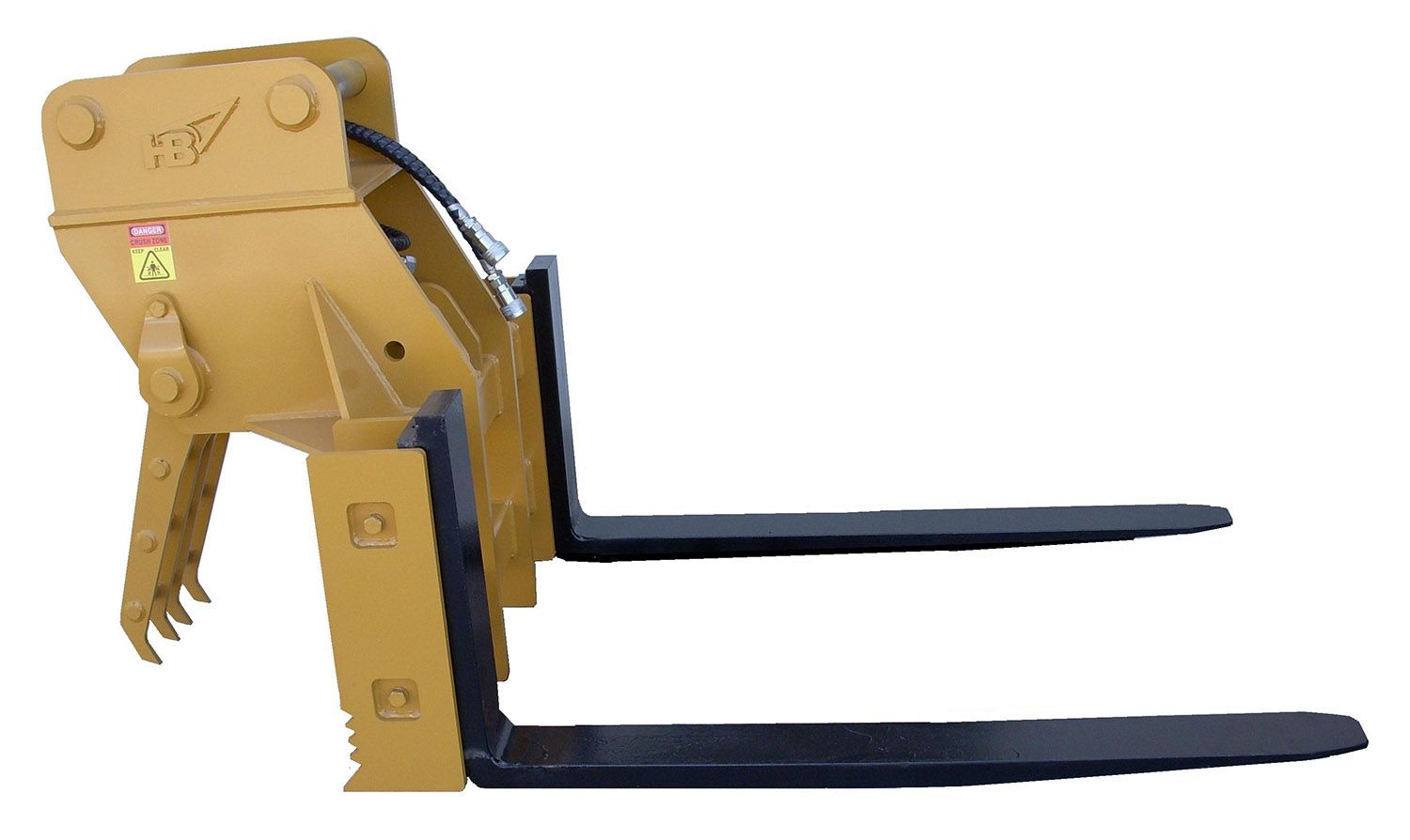 The Fork/Grab attachment is particularly suitable for use on 8 to 16 ton excavators.
