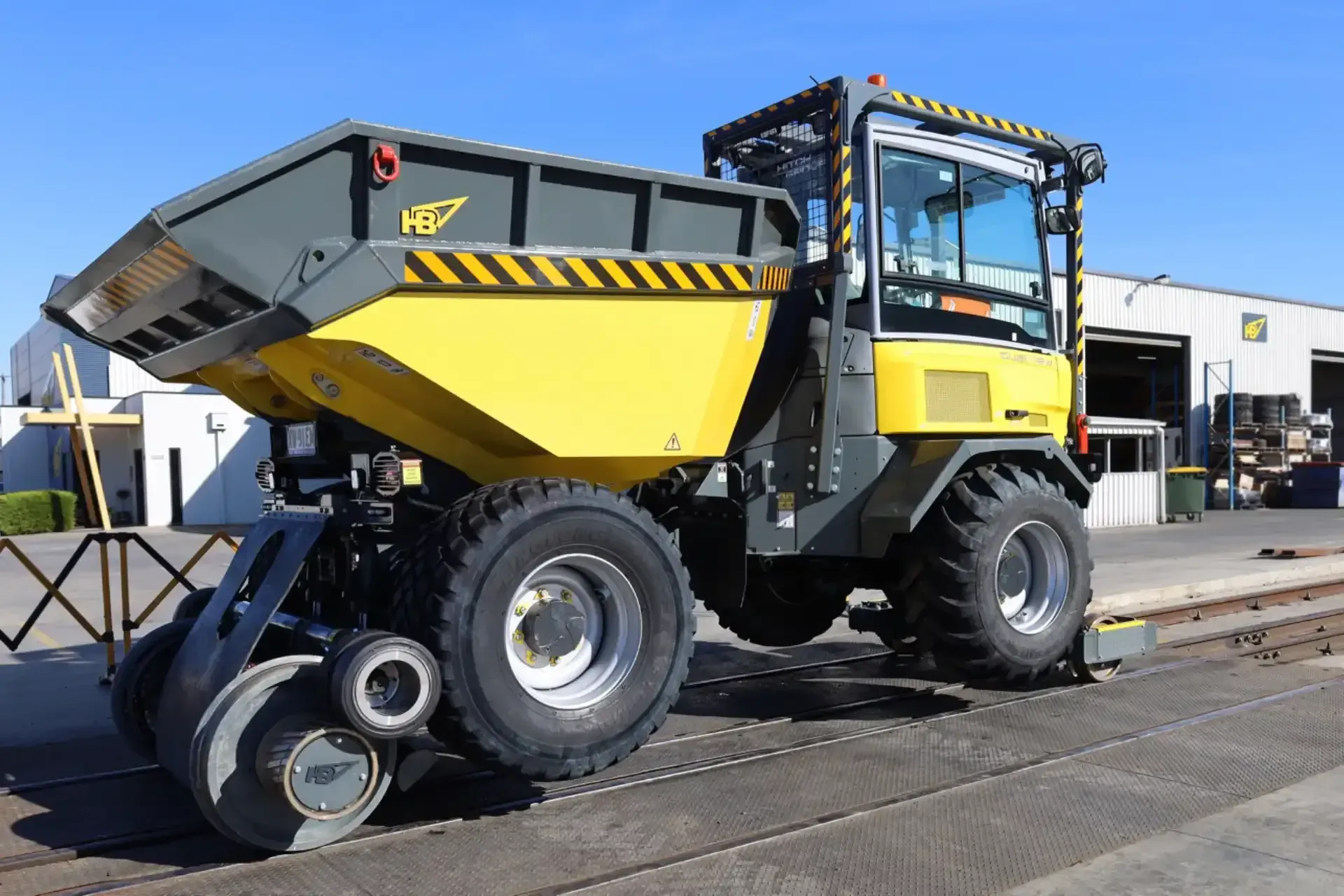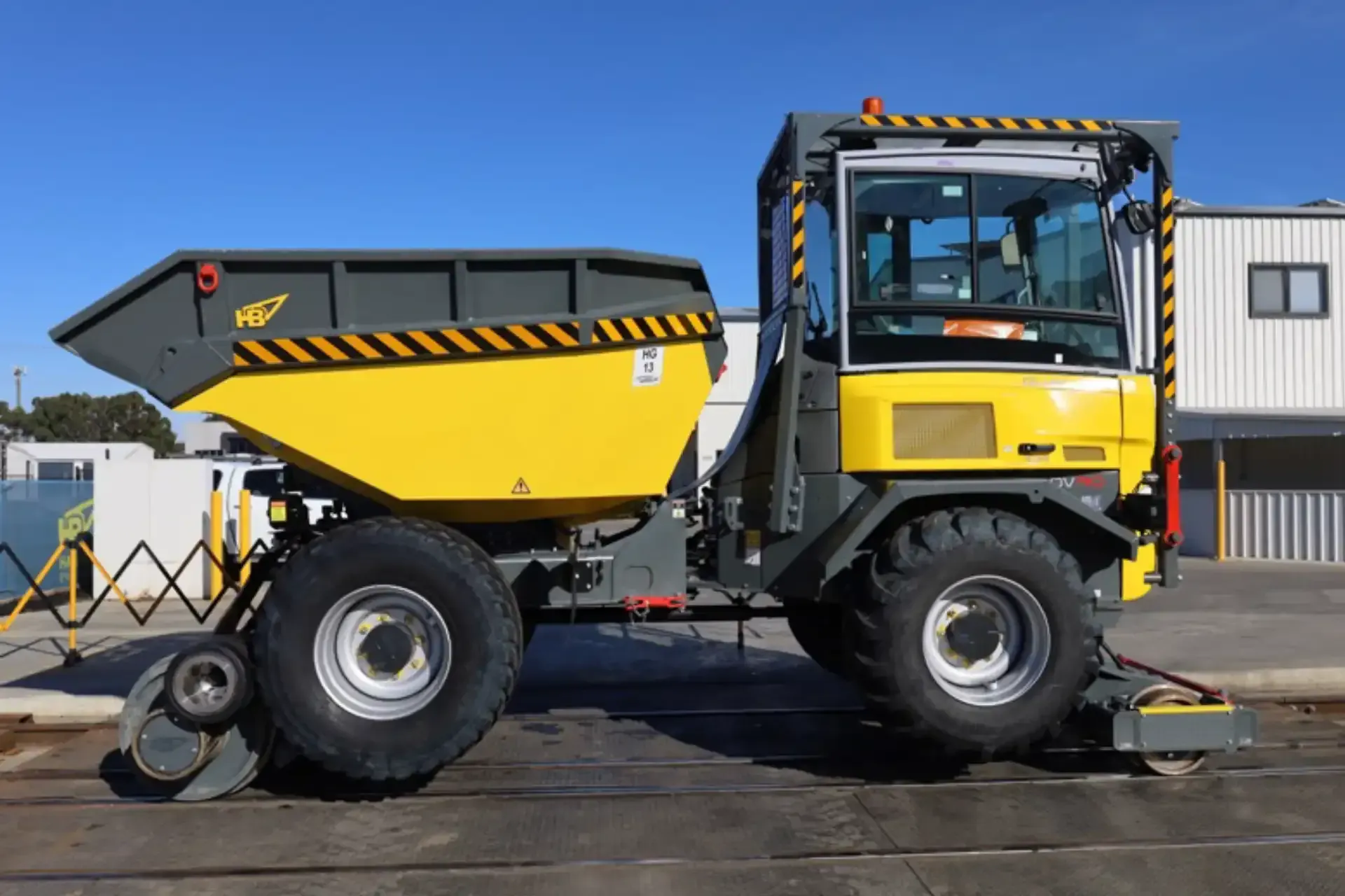 The Friction Drive System converts wheeled dumpers for rail applications, enabling seamless operation on both road and rail networks.